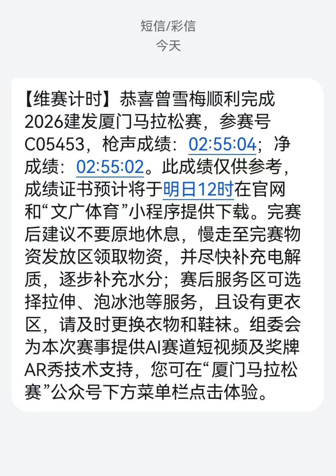 在跑完厦门马拉松的当晚,这条签名就改为了:“2026年的目标全马跑进245”